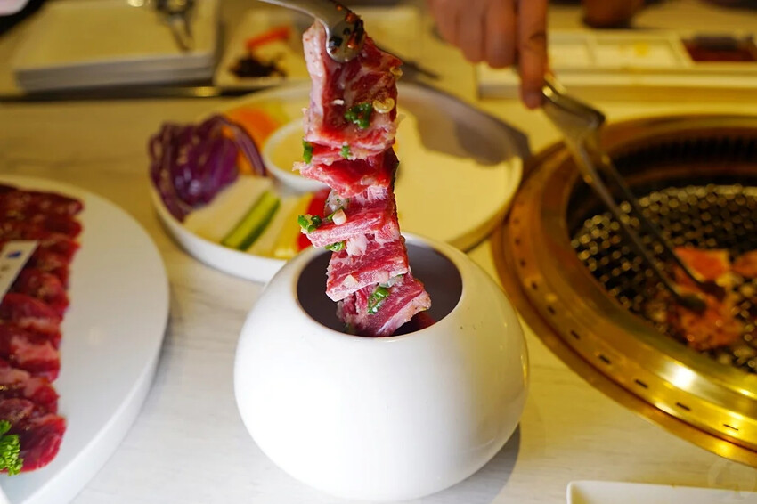 現在來到重頭戲啦!安格斯去骨牛小排、和牛橫膈膜以及厚牛舌,這三種肉中,最令人驚豔的應該是和牛橫膈膜。至於另外兩種肉也是一般水平。口感和風味都是關鍵,而和牛橫膈膜明顯在這方面表現得更出色。