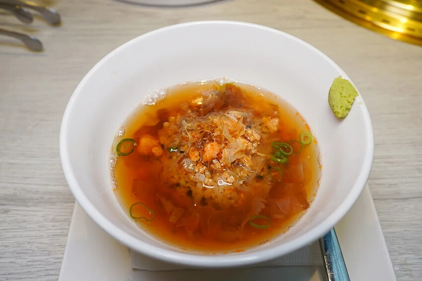 「三山燒肉」居然還有附牛肉湯,真是驚喜!湯頭很鮮甜,而且可以無限湯,牛肉片也非常多!更棒的是,味道超美味的!整體吃完,會覺得是一間被牛肉湯耽誤的燒烤店!!