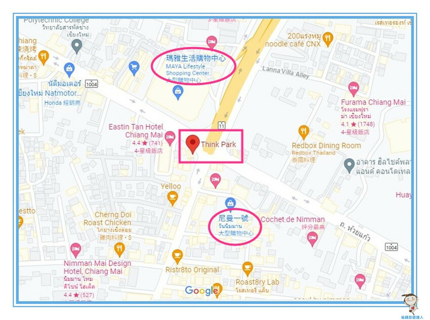 從地圖上看得出來,尼曼商圈主要集中在尼曼路和 Huay Kaew Rd. 的交叉路口