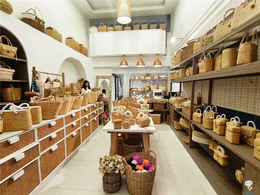 瞧瞧架子上大大小小不同尺寸的藤編包,一走進來我眼睛都亮了🤩