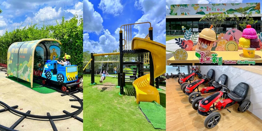 果然茶香觀光園區》鮮豔巨型冰淇淋+珍奶杯地景超好拍!玩迷宮.撈金魚.沙坑.旋轉滑梯.盪鞦韆,阿里山公路上的親子景點推薦