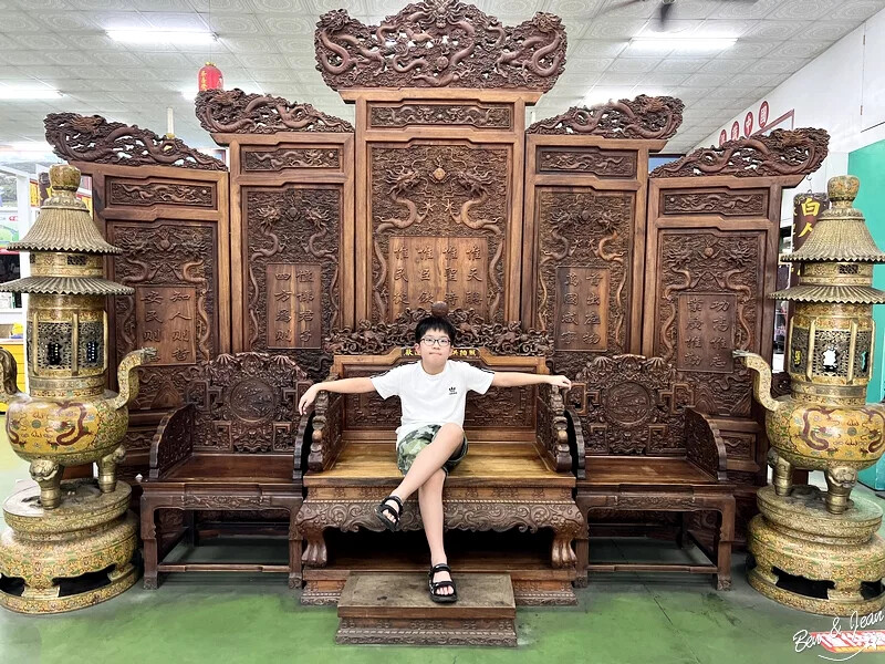 沒想到一進門就有龍椅可坐!! 好精緻的木雕作品