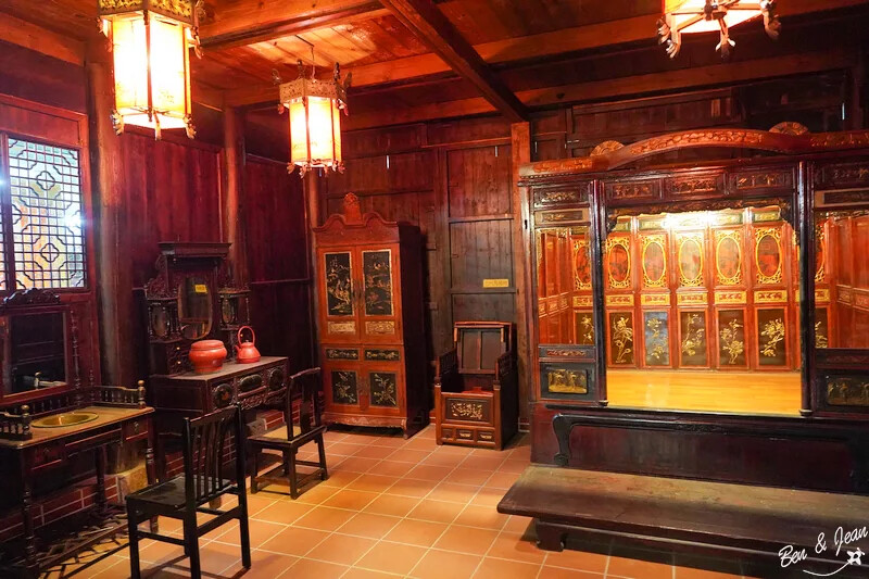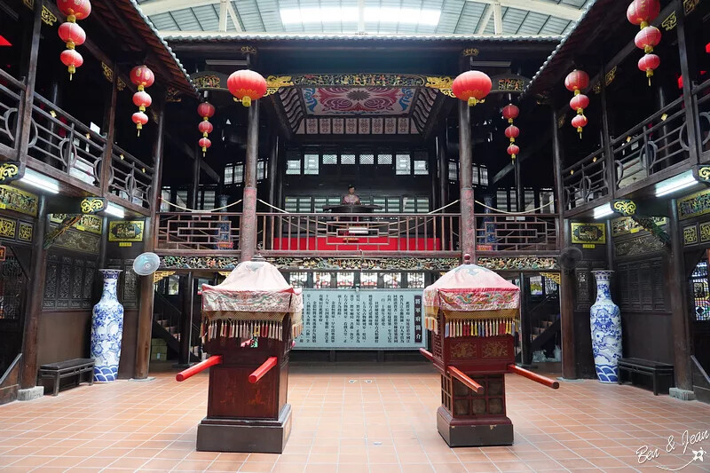 正後方為後堂、將軍廂房、書齋、客堂、古方古物陳列室、看戲大堂、正前方為戲檯。
