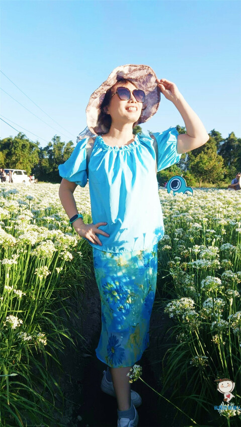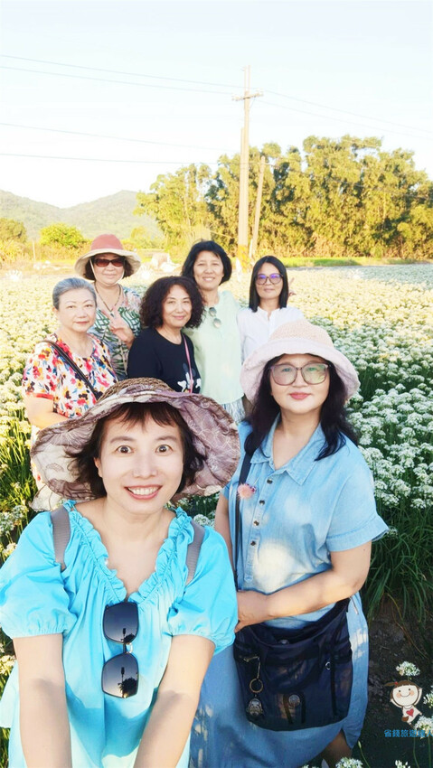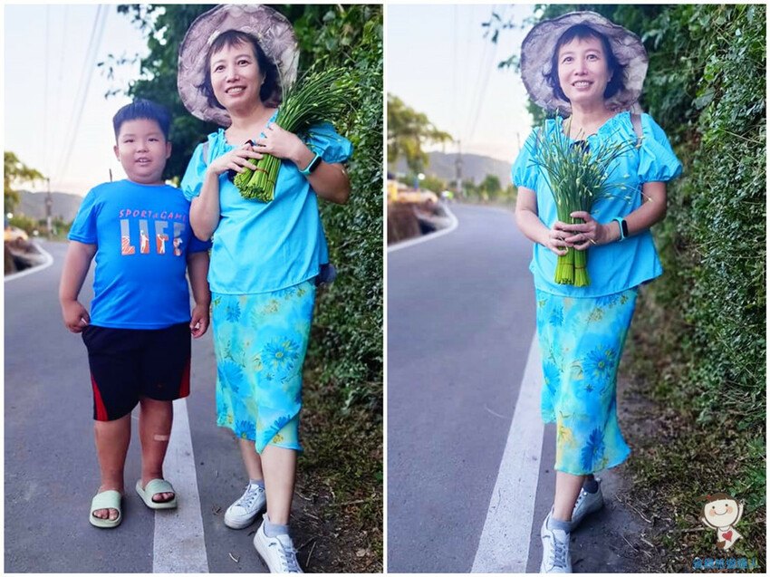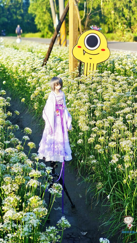 拿著一大把韭菜花,似乎也毫無違和感,拍起來不比鮮花遜色呢!