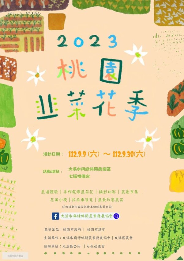 這張就是2023桃園韭菜花季的活動海報,包括舉辦日期和活動地點