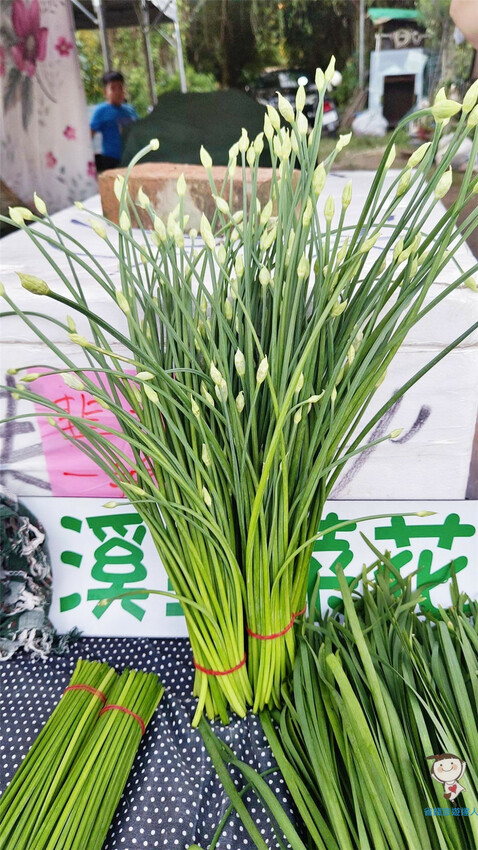 回程的路邊剛好看到有人在賣剛割下來的新鮮韭菜,這才是我們看習慣的韭菜模樣