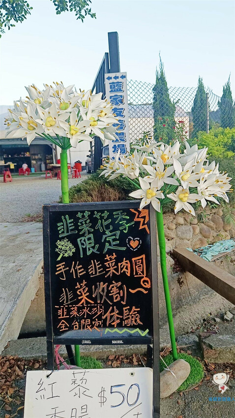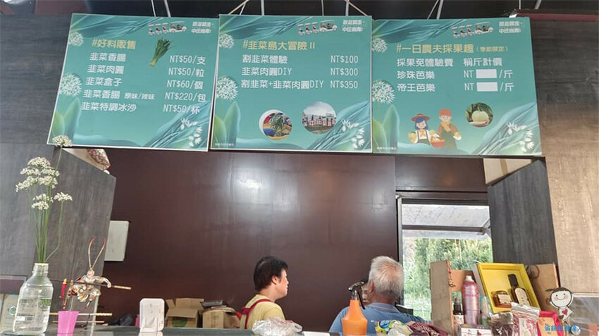 原來除了韭菜相關美食,還有割韭菜體驗$100,手作韭菜肉圓diy$300