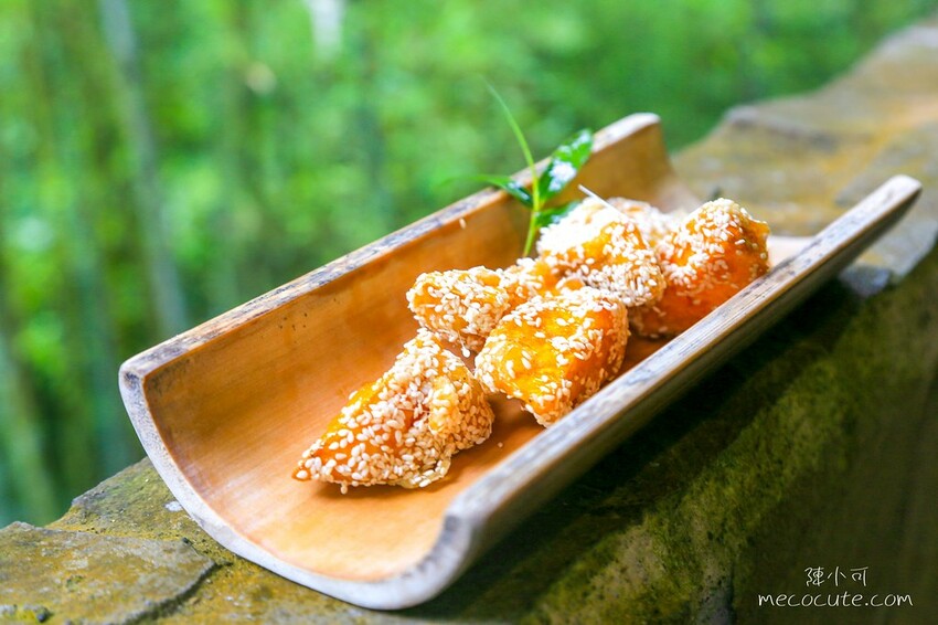 上面裹滿白芝麻增加風味,吃起來甜甜蜜蜜的,很棒的餐後甜點。