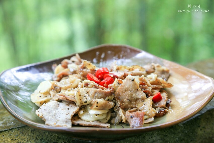 加了胡椒、辣椒拌炒,很香,但有點油膩。