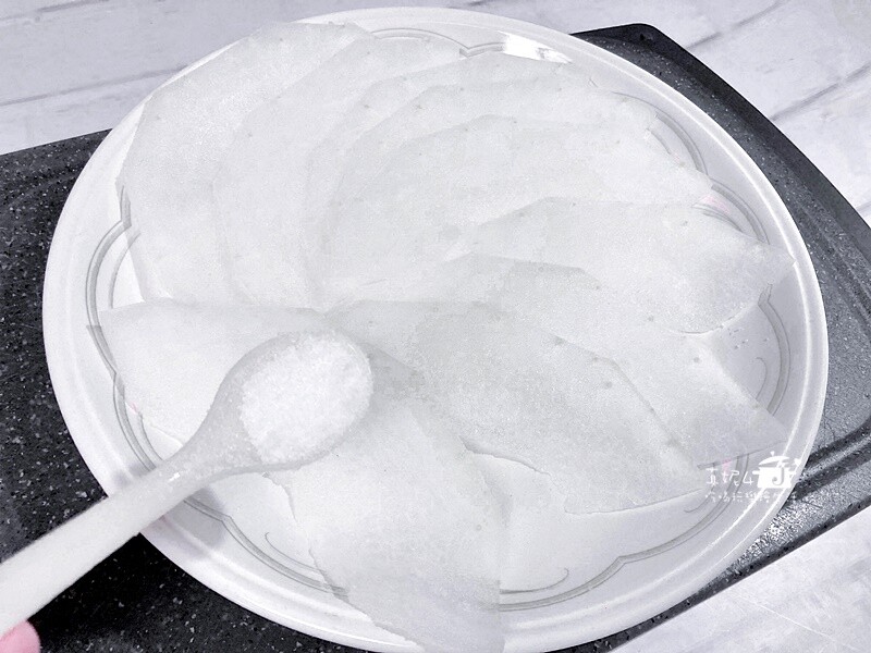 今天這道冬瓜肉捲則是要把冬瓜片薄再用鹽洗軟