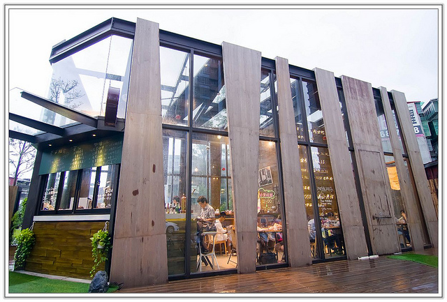 當初設計時的設計概念是以"發光的玻璃盒"發想,用玻璃與木頭來達到平衡,