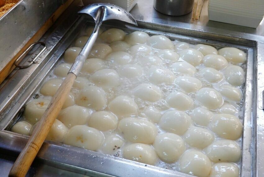 看了這麼多鹹食,該來介紹一下這間在新竹城隍廟旁的燒麻糬專賣店「周家燒麻糬」,無論是夏天還是冬天都有排隊人潮。