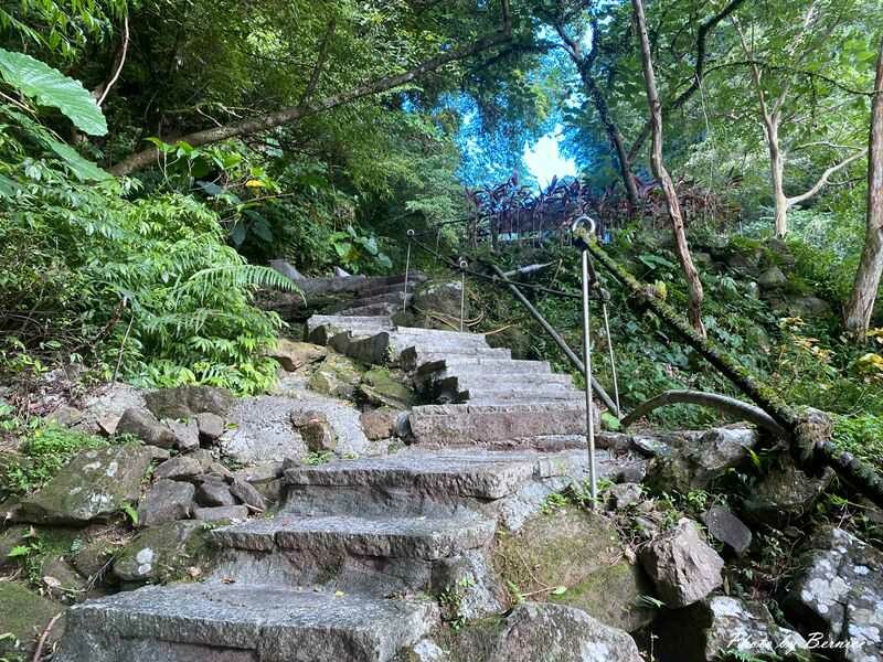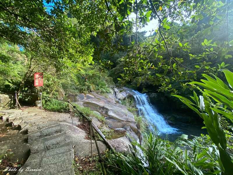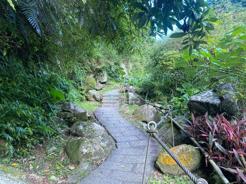 步道整理的很好,相當好走,沒有太大的起伏,唯快到瀑布區時才有稍陡的階路段;大多數的山友都在瀑布這拍完照後就折返,所以我也就自動帶入這裡是終點;只是看到步道還在往上,抱著好奇的心走了一小段去瞧瞧,發現又是另一道風景,眼前的山壁挺美的,忍不住拍了幾張;回家一查才知原來這裡才是步道的精華,瀑布是順帶的