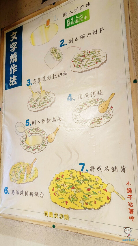 跟大阪燒一樣,文字燒的作法也有做成海報,告訴大家製作的步驟