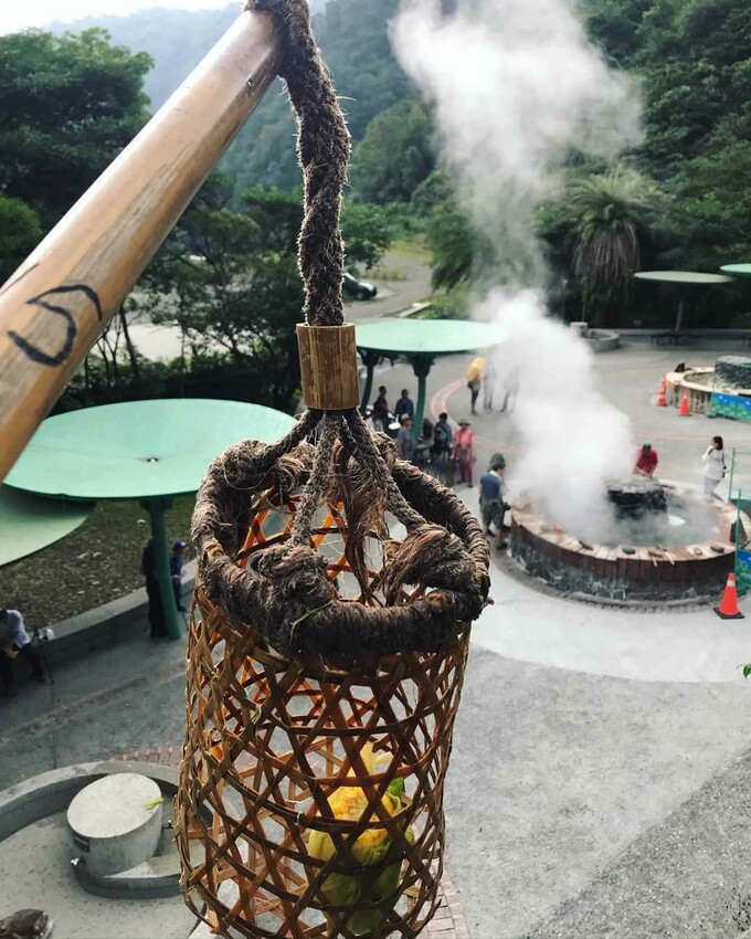 如果想要煮其他食材的話可得要自己準備上山,要提別注意的是畢竟不是煮火鍋,這邊是禁止烹煮海鮮跟肉類的喔~販賣部有提供租用專用竹籃,除了租金外雖然需要押金200元但在歸還竹籃後會就會退回押金,實際只需要20元的租金。煮蛋區更貼心的設有許多有屋頂的座位區,提供大家可以在此稍坐等待烹煮或是享用煮好的食材。