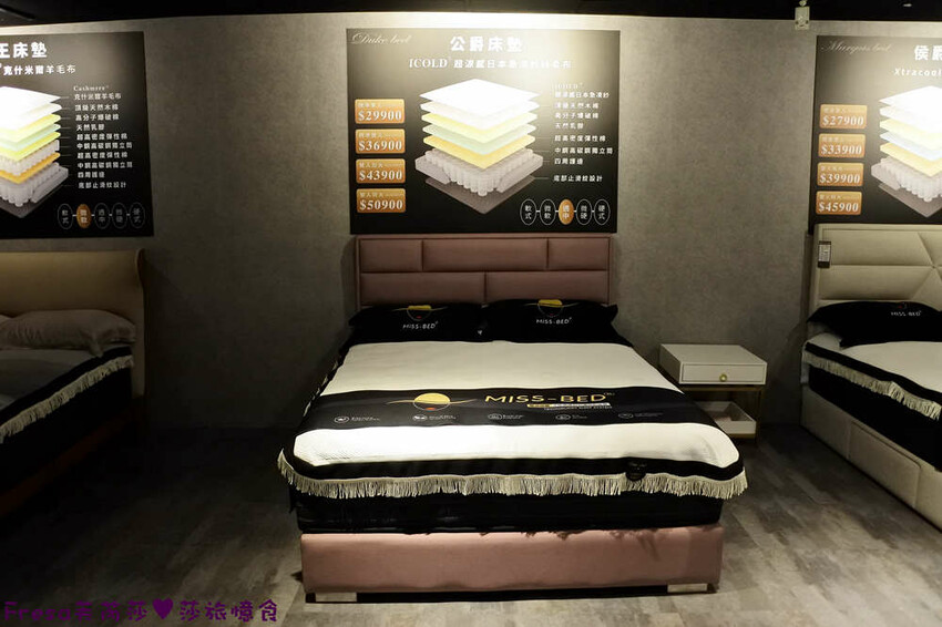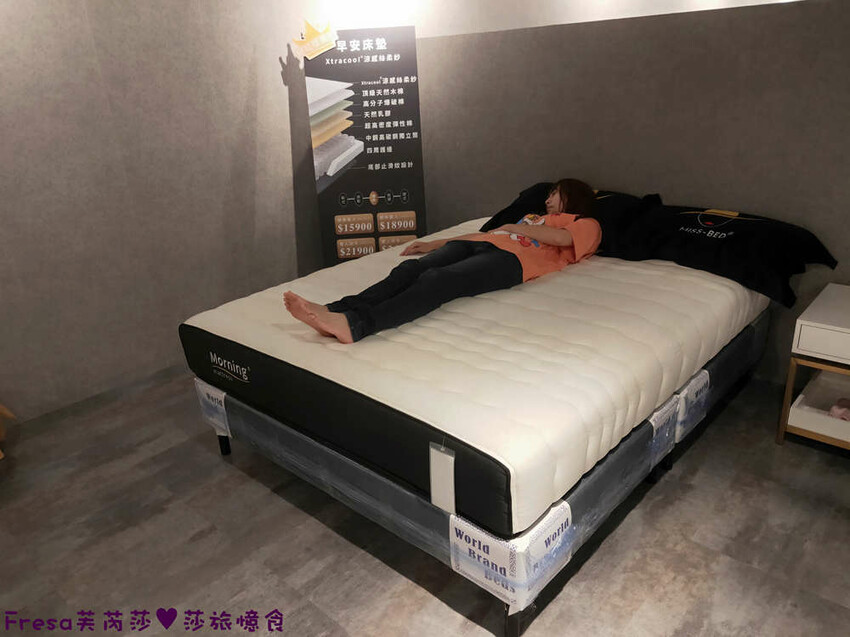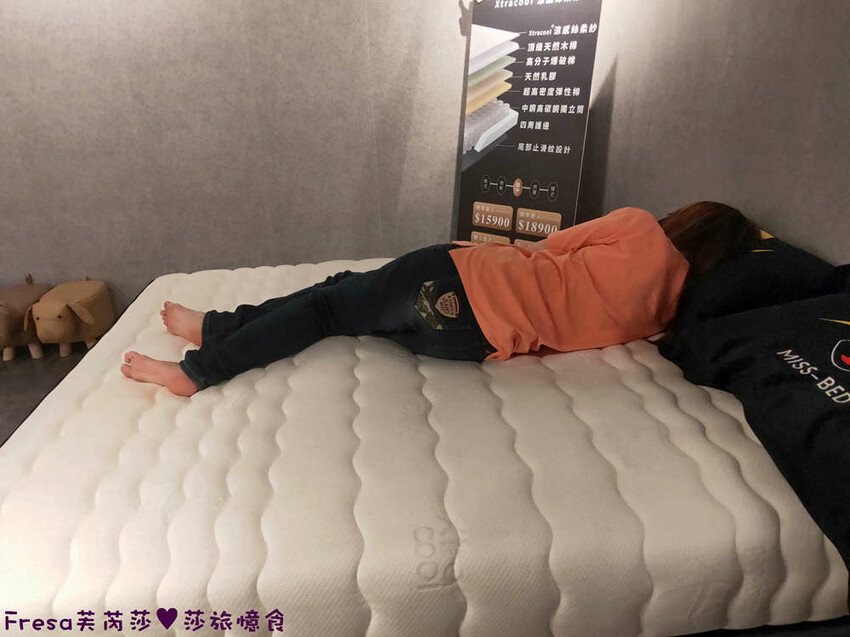 每一張床墊都有立牌介紹,自己試躺都沒壓力.
