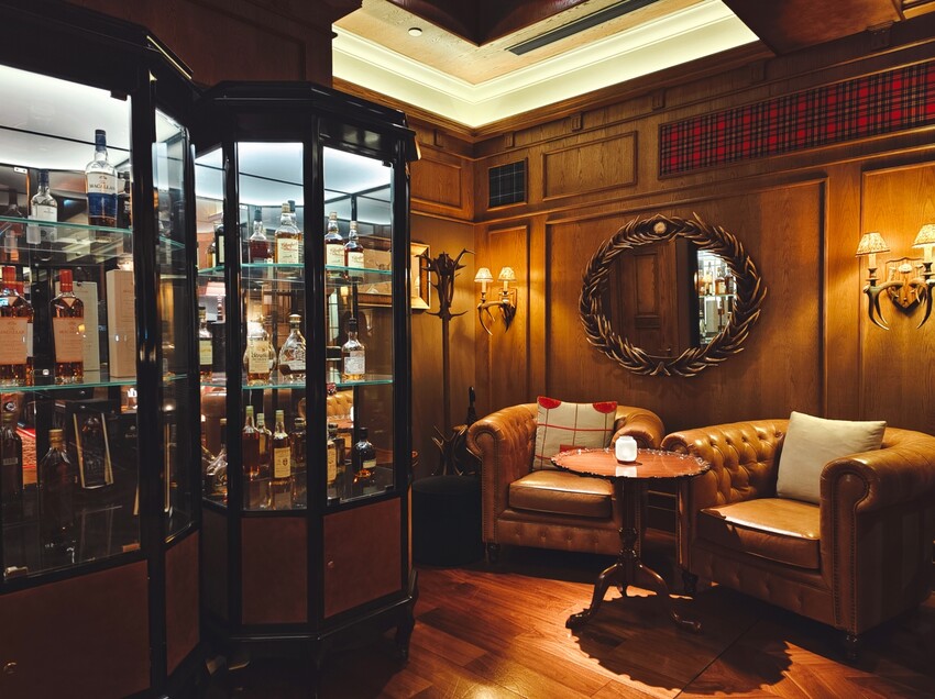 ▼酒吧內的實際光線比照片來得暗,但是氣氛很好。以蘇格蘭和英國的豪華家居作主題,有濃厚傳統蘇格蘭風格:橡木地板、英式真皮沙發、大花地毯、壁爐、鹿角水晶吊燈、雪茄室等家具裝飾。一旁火爐畫龍點睛,在幽暗空間帶來溫馨的暖意。