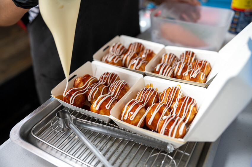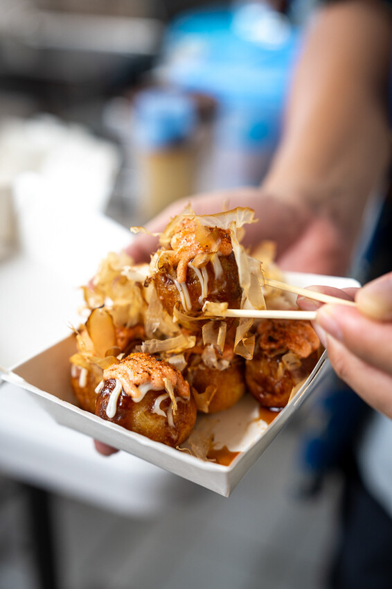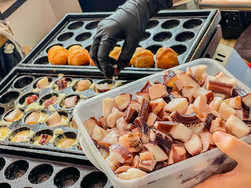 ▲章魚燒在製作後,會加入大量的柴魚片和海苔絲,柴魚片碰上章魚燒散發出熱氣後,還會有節奏的舞動著,並散發出濃郁的海鮮香氣。