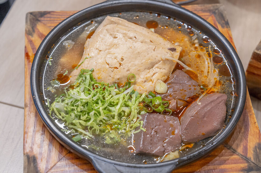 喜歡吃麻辣鴨血的朋朋們,點上「麻辣鴨血臭豆腐煲」,滑滑嫩嫩的鴨血,完全不腥,入味的辛香辣感,越吃越讓人欲罷不能,好吃一直吃不停。