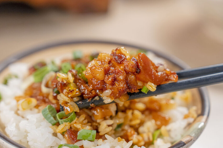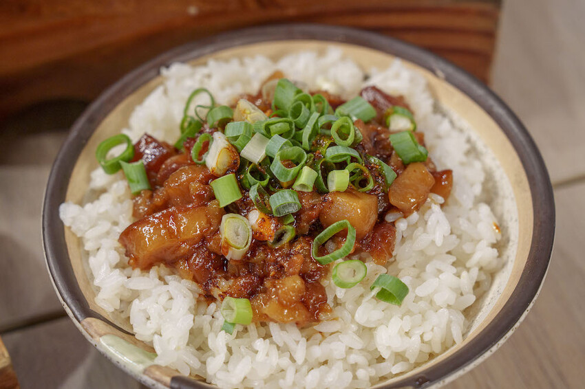 掰惹位也有被這裡的麻辣滷肉飯厲害到,你各位!看看這個完美的肥瘦肉比例,稍稍黏嘴的膠質,還有香香辣辣的滋味,搭配上Q彈的白米飯,再撒上一點蔥增添台味,有誰能抗拒得了啊~~~不誇張,這碗上桌直接就給他吃光光哩!