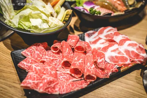 肉品我們選擇了特選牛五花+活菌梅花豬及大背肩牛肉+活菌梅花豬的組合