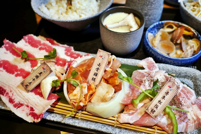 一次可以吃到牛、豬、雞這三種肉,還有附上蓬萊米白飯、焙煎胡麻燒肉菜絲、花蛤茶碗蒸、味增湯、酒蒸花蛤,這麼豐盛的一份個人套餐,竟然只要300元有找!喔,還要算上飲料、冰淇淋吃到飽加上免服務費這樣,平價大份量真的有夠超值。