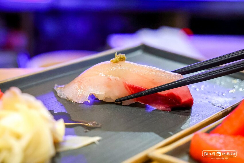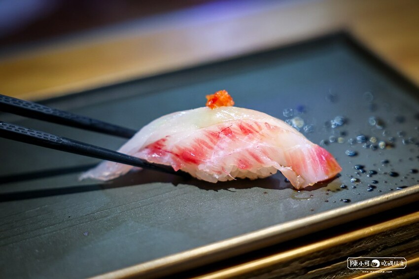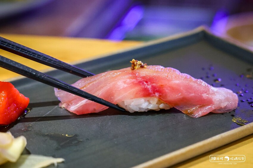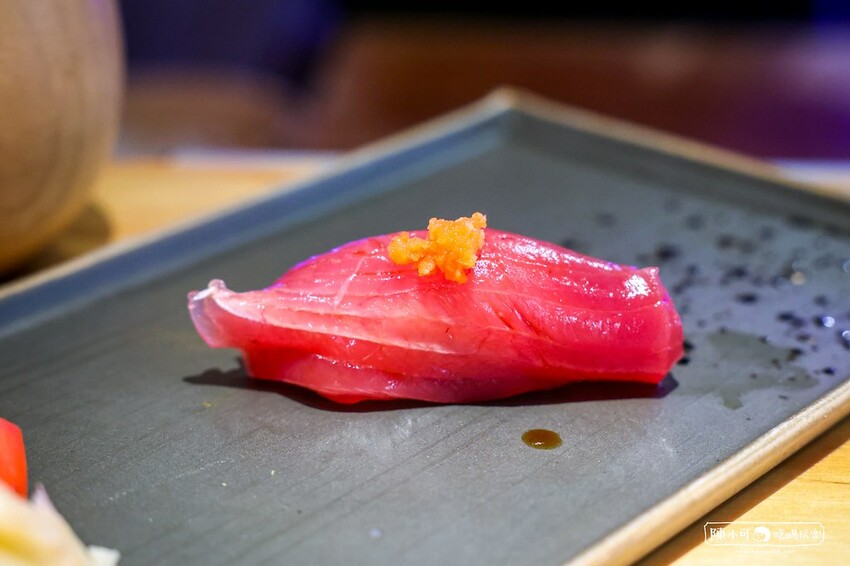師傅提到鰹魚味道較重,所以搭配辣蘿蔔泥提味,魚肉肉質滑順、柔軟帶有韌性。