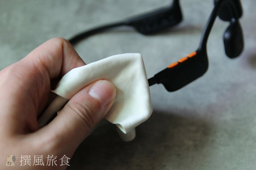 氣傳導式藍牙耳機僅需要掛在耳朵上,不入耳的特色,讓他在配戴上更通用。佩戴著運動後儘管都是汗水,但清潔也很容易,僅需要以清潔布沾取少量酒精擦拭即可,只要注意充電孔要塞好。