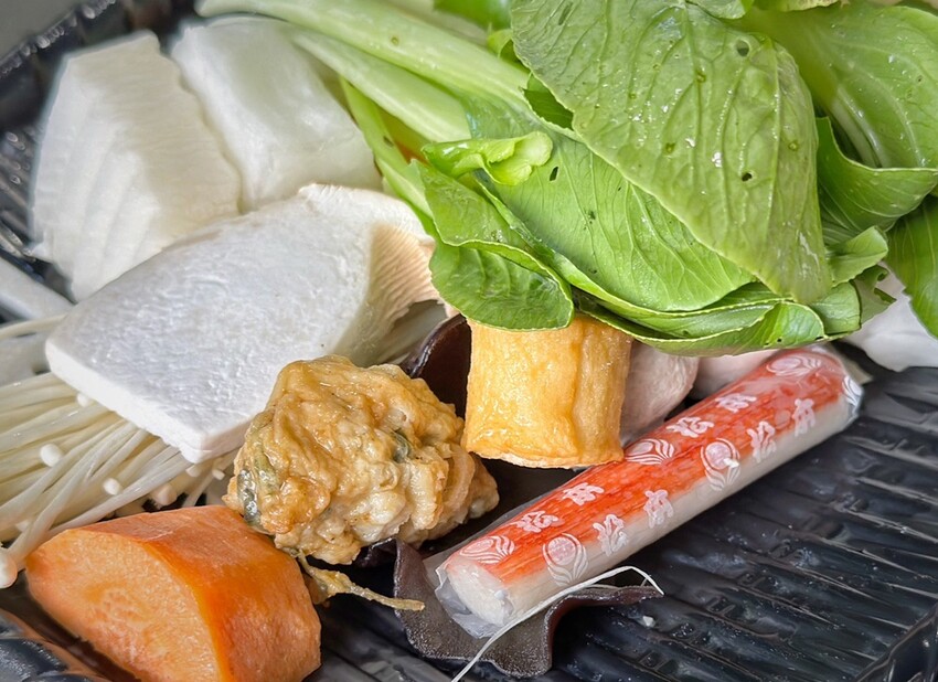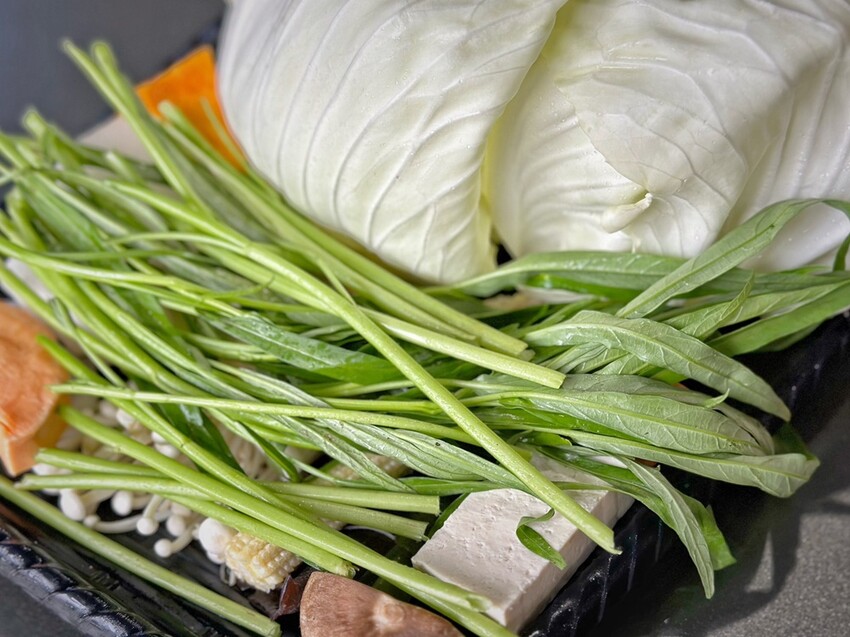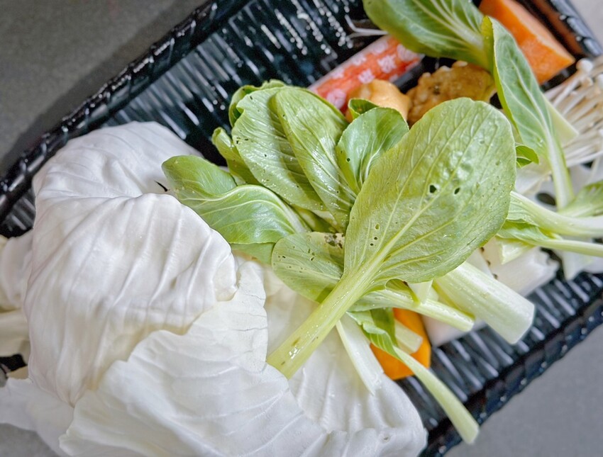 高鼎屋鍋物的菜盤分為三種,綜合菜盤(火鍋料+蔬食)、蔬食菜盤(無加工品火鍋料)、菜盤換肉,我們是選擇了綜合菜盤及蔬食菜盤。
