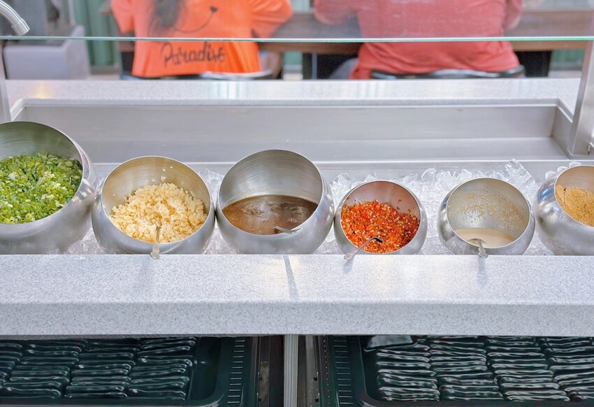 高鼎屋鍋物的鍋底高達10多種可以選擇,而我們點選了昆布鍋、韓式泡菜鍋(加價)、川味麻辣-大辣鍋(加價),而點選川味麻辣鍋的朋友還可以再加價點選老油條。