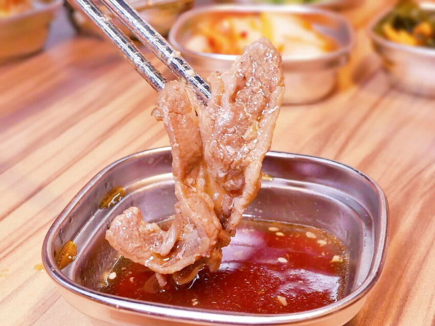 肉品部分皆經過醃漬,本身已經有味道,烤完直接吃就超入味.若是沾點韓式烤肉醬則是更顯多層次口感!