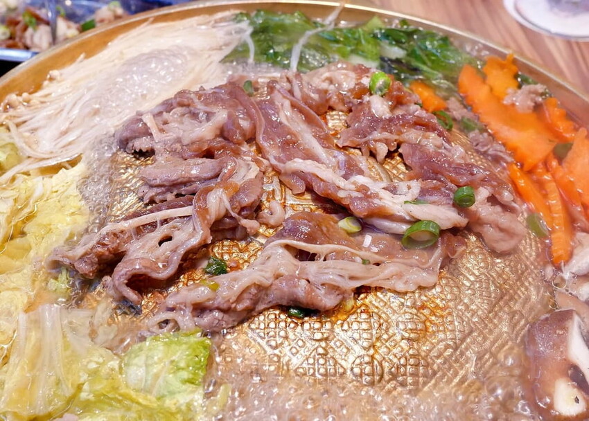 使用銅盤邊烤邊蒸煮肉片真的很方便,肉片快熟又保有湯汁,吃起來又嫩口!很有水準之上!