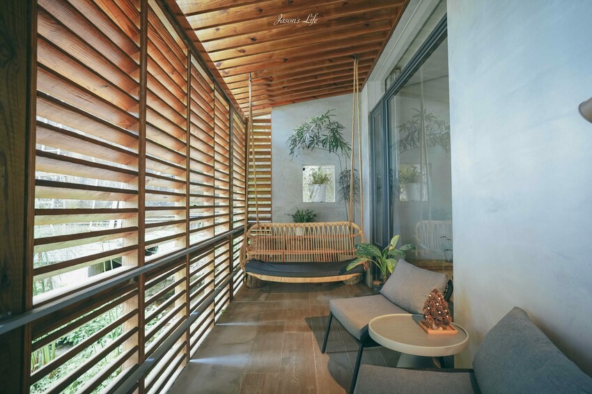 長廊盡頭有擺設搖椅,入夜時分可以坐在這享受微風