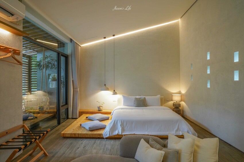 挑高且侘寂風格房間環境,一個房型三種空間的融合