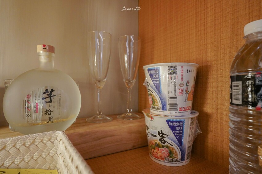 房間內看到的零食、飲料和酒精性飲品,全都是免費享用