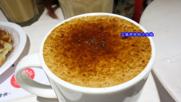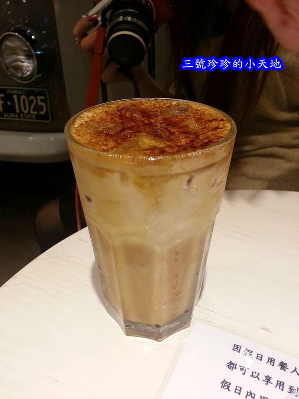 上面有一層薄薄烤過的黑糖,但是因為是冰飲,所以那一層糖不是很明顯,那時店長還說:若是點熱的更好喝,且也更漂亮喔!
