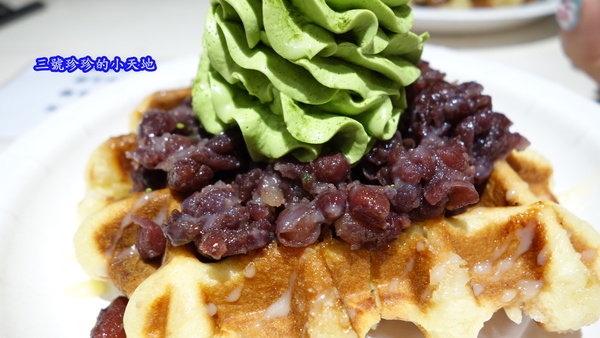 外脆內軟的比利時鬆餅搭配上綿蜜不軟爛的蜜紅豆,再裹上細緻滑順的抹茶鮮奶油,一口咬下細細咀嚼品嘗後,可以感受到濃郁的鬆餅奶香味再混著茶香/蜜紅豆的香甜味,這種多層次的口感,讓人有種幸福的滿足感。