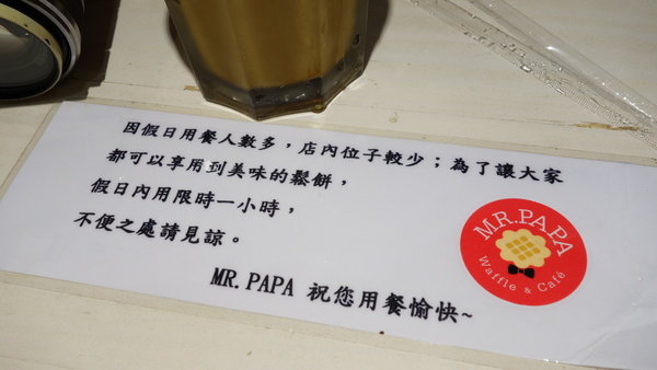 因為MR.PAPA的座位數比較少一些,在假日時是有用餐時間限制的,假日內用限時1個小時喔!