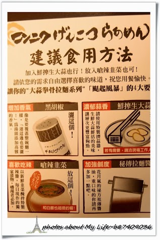 還沒進店內就從外牆的大幅海報上知道大蒜拳骨拉麵是花月嵐的招牌味道