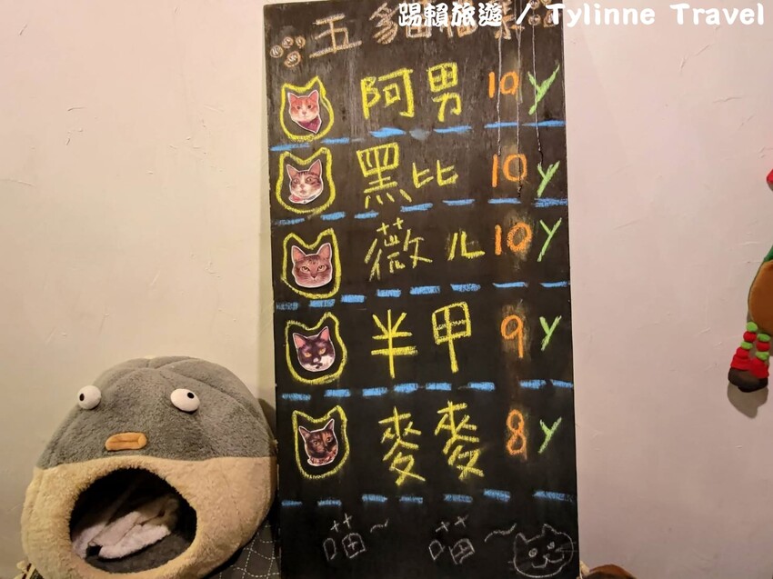 店內一共有五隻貓咪,在門口的部分有標示名字跟各自的性格
