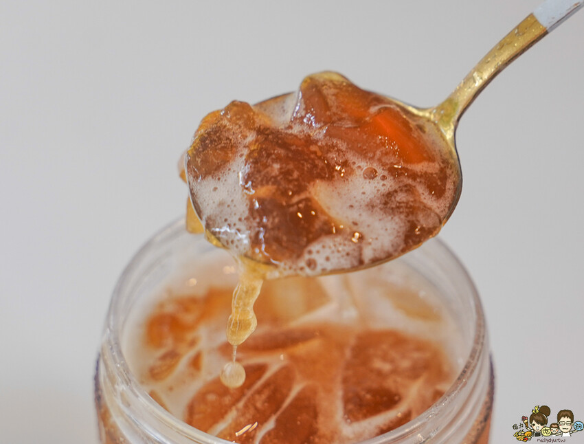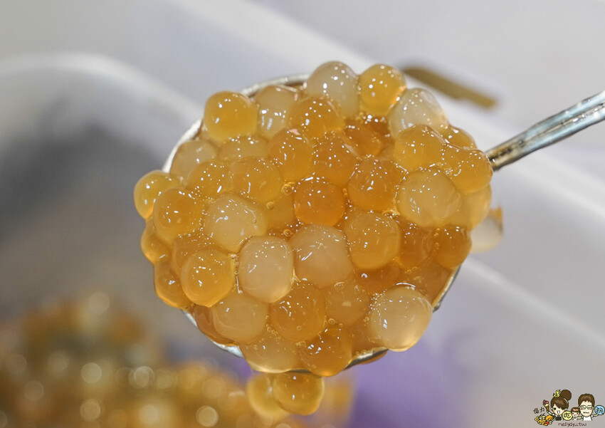 獨家秘製混搭的蜜香珍珠,口感很軟Q雙種層次,黃金珍珠蜜過蜂蜜香甜順口