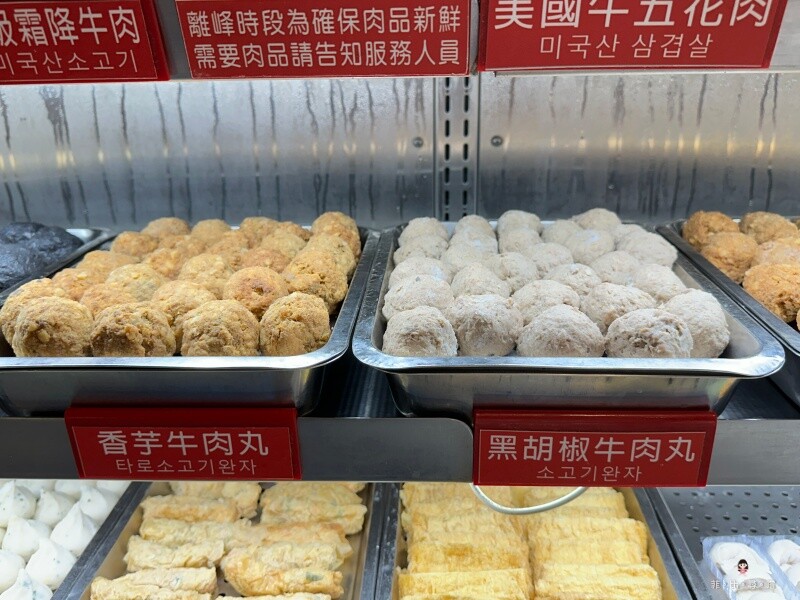另外還有各種時蔬、多種菇類、手工丸子、雞佛、豬腦、豬心、基隆知名的手工燕餃、蝦餃⋯⋯等,