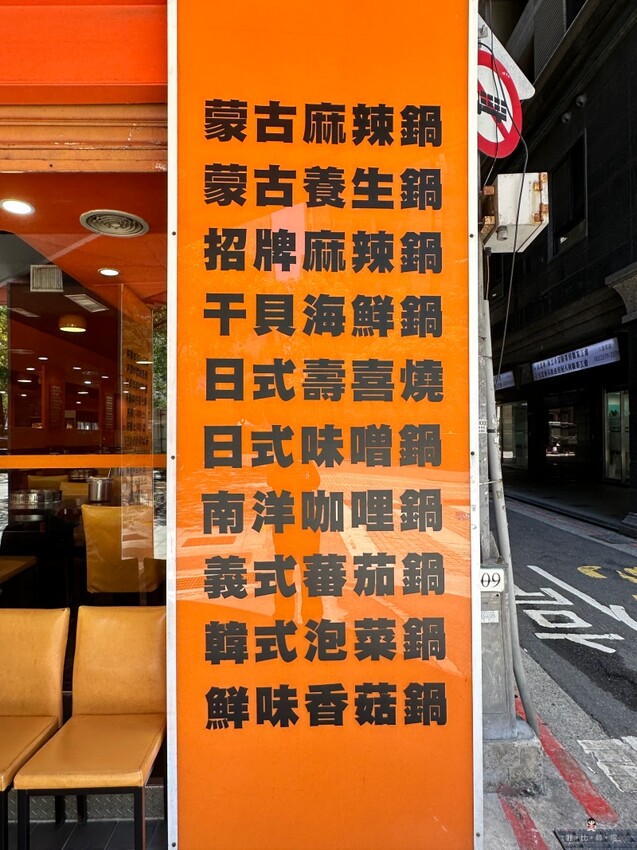 有蒙古麻辣鍋、蒙古養生鍋、招牌麻辣鍋、干貝海鮮鍋、日式壽喜燒、日式味噌鍋、南洋咖哩鍋、義式蕃茄鍋、韓式泡菜鍋、鮮味香菇鍋等