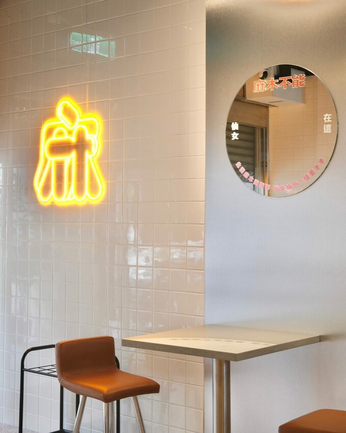 ▼【麻木不能湯底專門店】用餐環境充滿文青風格,融合時髦的復古風元素,有許多創意的文字和鏡子,以及超有古早味的老式窗花,讓人忍不住拿起手機大拍特拍,提供多人桌和吧台座位區,無論獨自前來或聚餐都很可以!