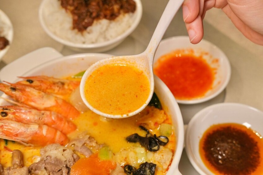 ▼充滿異國風味的椰椰叻沙蝦蝦鍋 ,嚴選新加坡傳統叻沙為原料,喝起來帶有微辣的香料味,跟椰奶味結合恰恰好,湯頭相當濃厚夠味,蝦子的尺寸更是實在,每一尾都頭好壯壯很新鮮,蝦味融合湯頭也更鮮甜了!