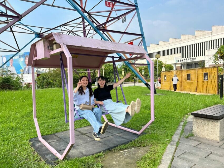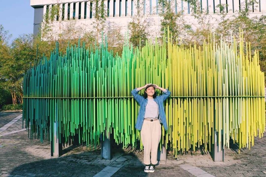 ▼璀璨電塔旁還有一個特別的公共藝術「振秧」搭配鮮豔的綠黃色,讓地震知識不顯枯燥乏味