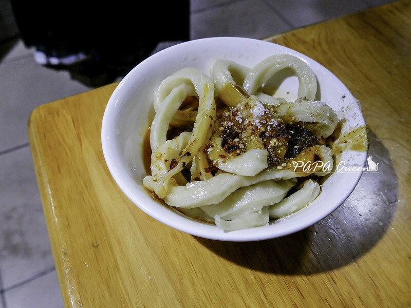 取餐櫃台拿了券子獲得這碗甜水麵…不只加糖,還加了不少之外還撒上當地辣椒粉淋上醬汁應該是老抽醬油之類的,一小碗,我一個人可以吃光沒問題!