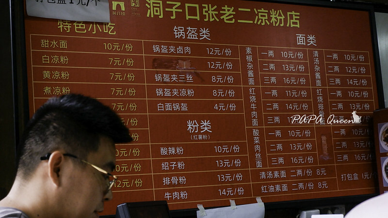 洞子口張老二涼粉分店似乎不少,文殊院區裡我就看到兩家一家就位於文殊院大門走出來不遠處就會看到,另一家就這麼巧就是O和O客棧樓下,我覺得文殊院門口這家比較有在地老店特色,拉著大貓就跑來這裡吃甜水麵(是PA叨唸很久小食) ,其實這招牌是涼粉 但我就想吃甜水麵跟鍋盔!