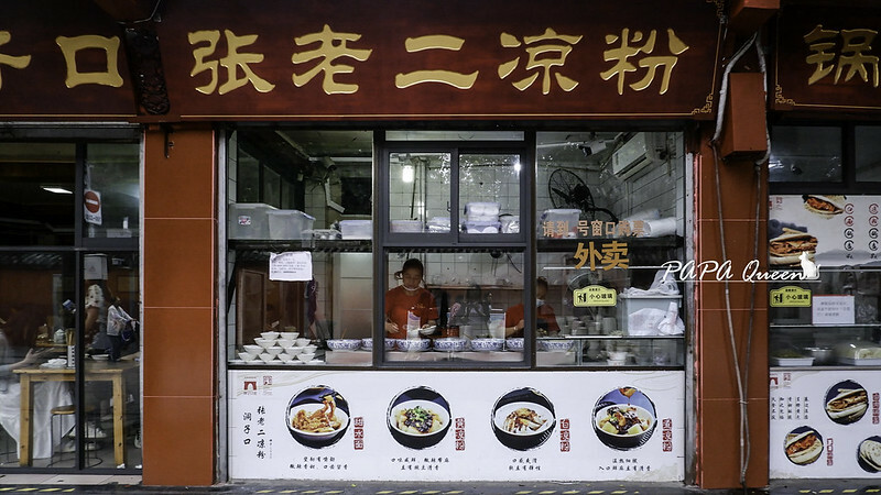 跑到四川成都有不少素食餐廳的,想品嘗在地小吃的朋友請將吃素放寬標準吧!,雖然這麼說照樣認真問了一下會加那些料, 洞子口張老二涼粉 生意極好可素,上網查了一下才知原來這家是成都必吃美食呀!!
