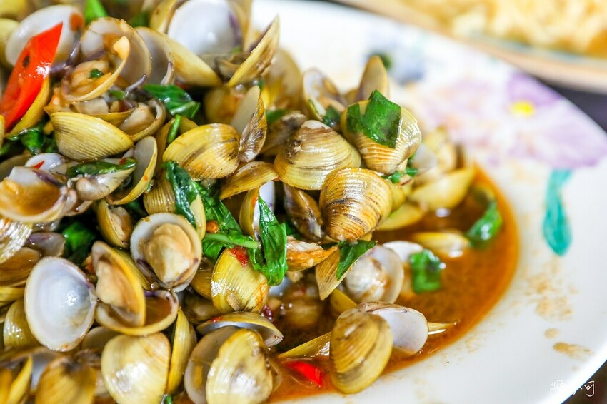 安可的炒蜆仔單吃會覺得味道偏鹹,不過配白飯剛好,九層塔、辣椒和蒜頭香氣都很夠。